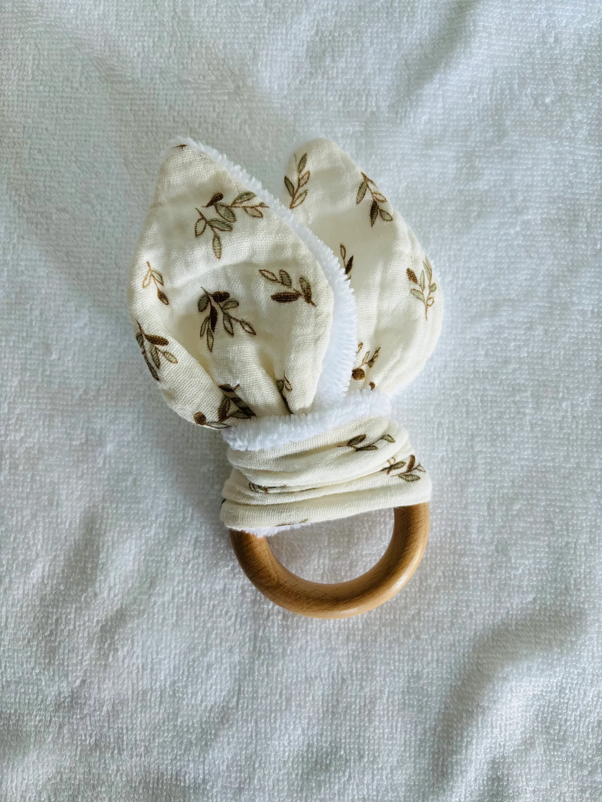 Découvrez notre joli anneau de dentition en bois de hêtre, coton et bambou bio, conçu pour apaiser les gencives douloureuses de votre bébé.