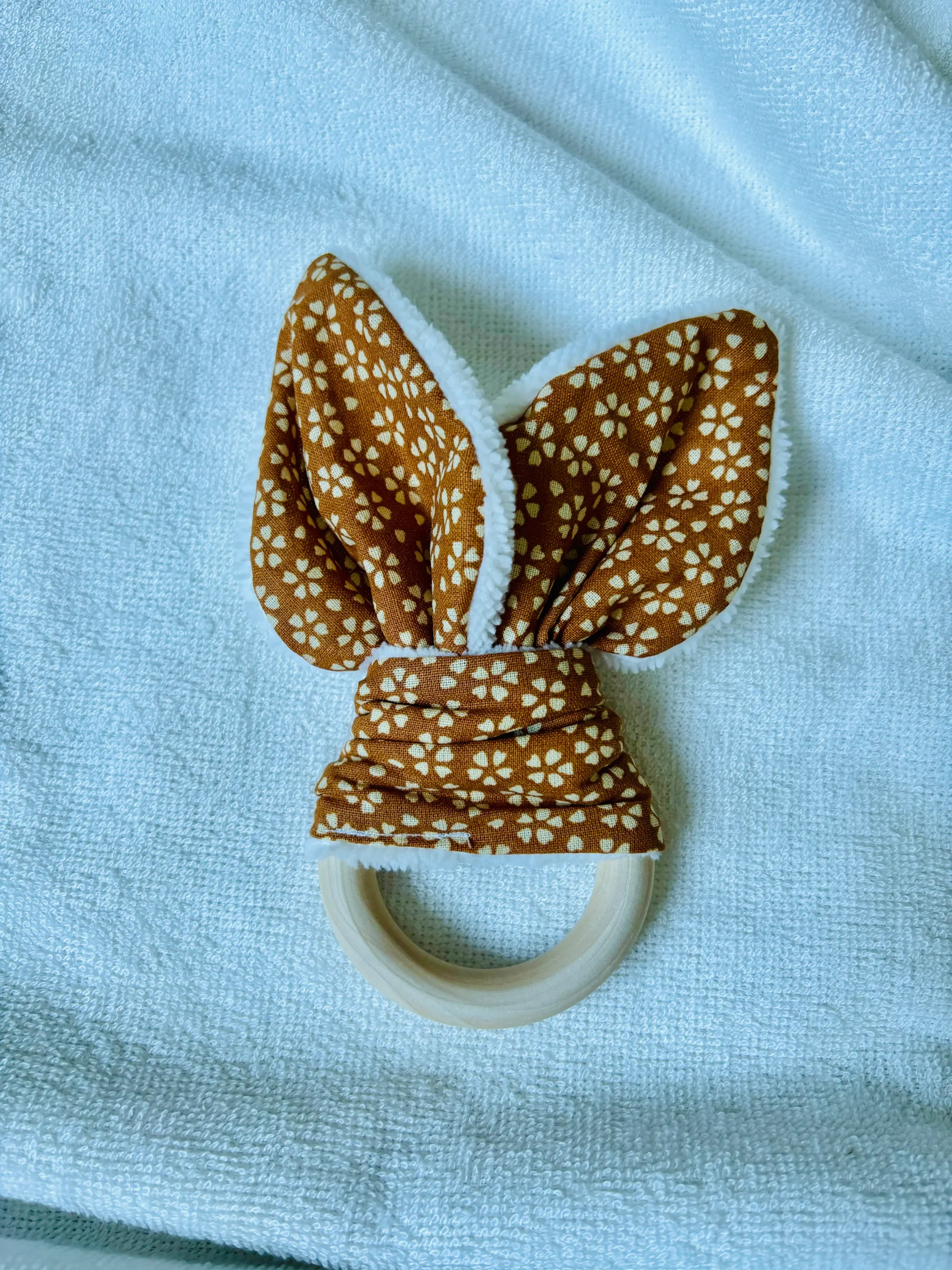 Découvrez notre joli anneau de dentition en bois de hêtre, coton et bambou bio, conçu pour apaiser les gencives douloureuses de votre bébé.