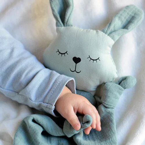 Doudou lapin est fabriqué en coton bio certifié Gots et sa tête est rembourrée en fibre de maïs, matière végétale. La simplicité de ses formes et de son visage stimulent l’imagination de votre enfant. La matière lange est très douce et agréable au toucher. Doudou lapin en coton bio est un véritable compagnon pour accompagner bébé lors de ces premières expériences. Le doudou est un « objet transitionnel » : il rassure en l’absence de la présence parentale réconfortante. Produit bio et végan. Composition: 100% cotonbio certifié GOTS; rembourrage 100% fibre de maïs; peinture à base d’eau certifié ECO PASSPORT…
