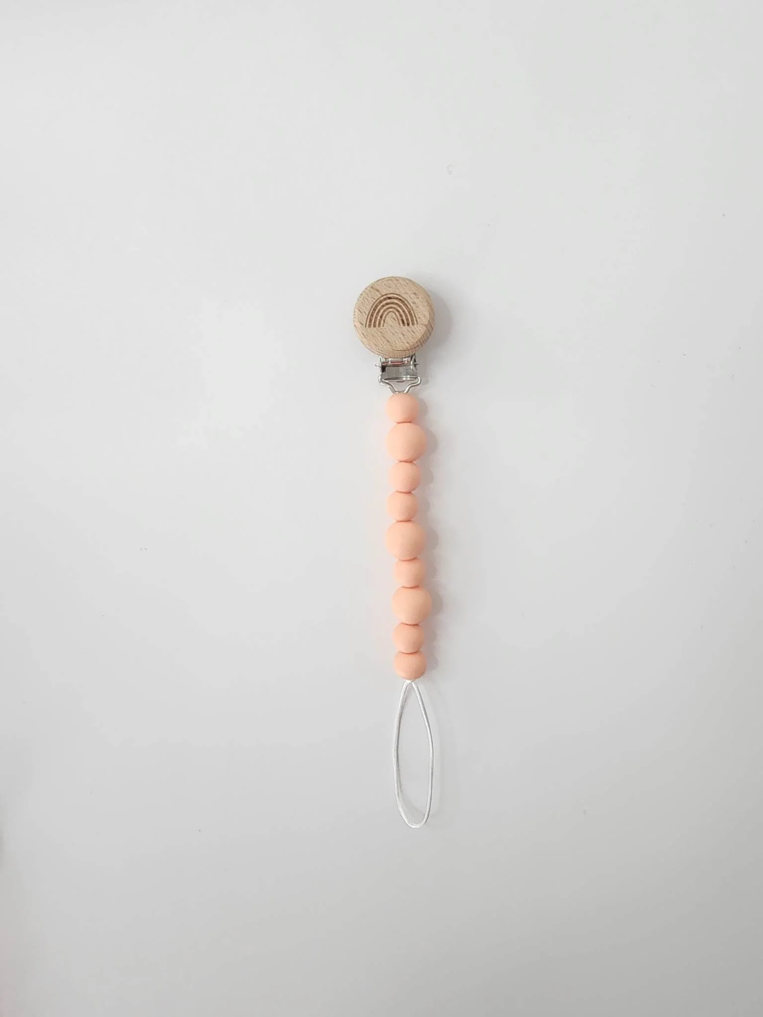 Attache-suce en perles de silicone – Blanc, beige et bois