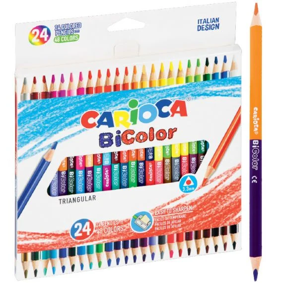 – 24 crayons double face = 48 couleurs différentes