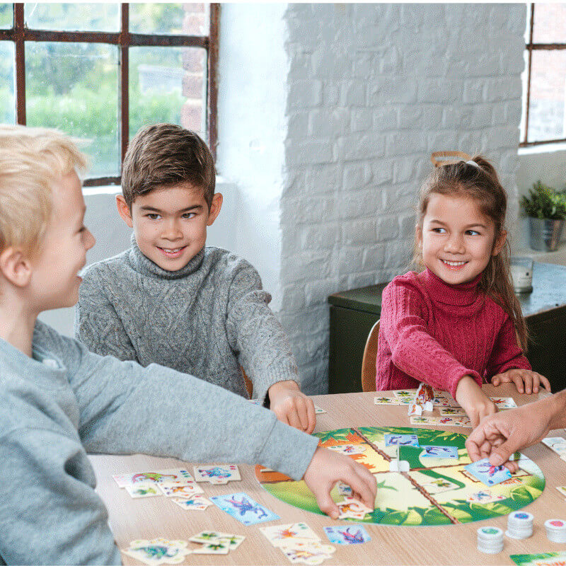 BUT DU JEU DE DINO PICNIC ✓ De 2 à 4 joueurs. ✓ De 6 à 106 ans. ✓ Durée d’une partie : 20 min. ✓ Fabriqué en France et éco-conçu. Herbivores ou carnivores, les dinosaures devaient lutter pour se nourrir et se reproduire ! Dans ce jeu de prise de tuiles, vous recréez les chaînes alimentaires qui existaient il y a 100 millions d’années pour donner naissance à plein de bébés dinos. Un jeu intense et rapide dans lequel tactique et choix vous mèneront à la victoire ! Nourrissez vos dinosaures : Comme tous les êtres vivants, les dinosaures n’avaient…