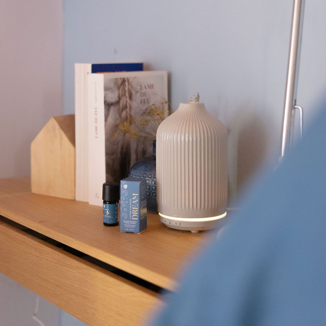 Utilisez dans votre diffuseur notre synergie d’huiles essentielles de lavande, petit grain bigarade, marjolaine, camomille romaine et de valériane travaillent en harmonie pour vous faire glisser gentiment vers une belle nuit et de doux rêves.