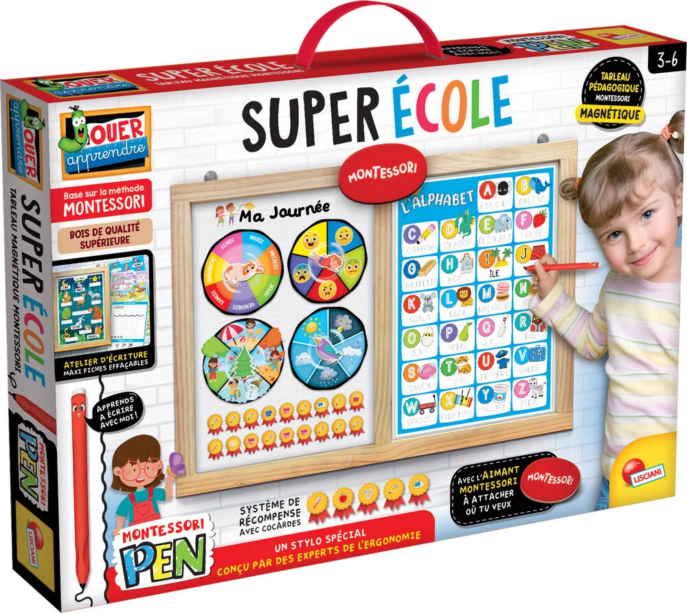 Apprendre à écrire ? Cela devient un jeu d’enfant avec le coffret Montessori Super Ecole de Lisciani Giochi. Ce kit d’apprentissage éducatif comporte un stylo ergonomique spécial ainsi que des tableaux pour permettre à votre enfant de se centrer sur l’expérience et le plaisir de la graphie.