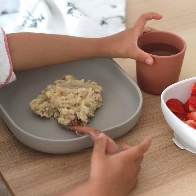 Le design et la forme ergonomique de ces éléments aident à guider la prise de nourriture grâce aux bords haut et ronds, facilitant ainsi l’apprentissage pour l’enfant. La cuillère est dotée d’un manche court et ergonomique, ainsi elle est parfaitement adaptée aux petites mains de votre enfant. La forme du cuilleron (partie creuse) est spécialement conçue pour s’adapter à la bouche des tout-petits, facilitant ainsi la prise des aliments. Grâce à sa souplesse, cette cuillère élimine tout risque de blessure, garantissant une expérience alimentaire agréable et sécurisée pour votre enfant.