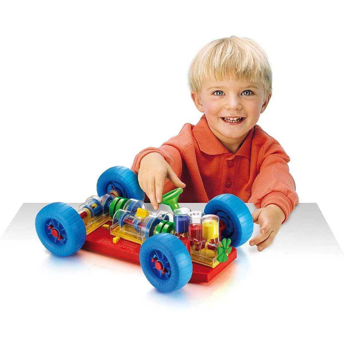 La voiture Quercetti est une voiture transparente pour les enfants qui aiment la technologie. La voiture se compose de 9 grandes pièces qui doivent être montées sur le châssis dans le bon ordre. Après cela, la voiture doit être démarrée manuellement en la poussant vers l’avant ou vers l’arrière. Vous verrez ensuite comment fonctionne cette voiture, notamment comment les pistons,