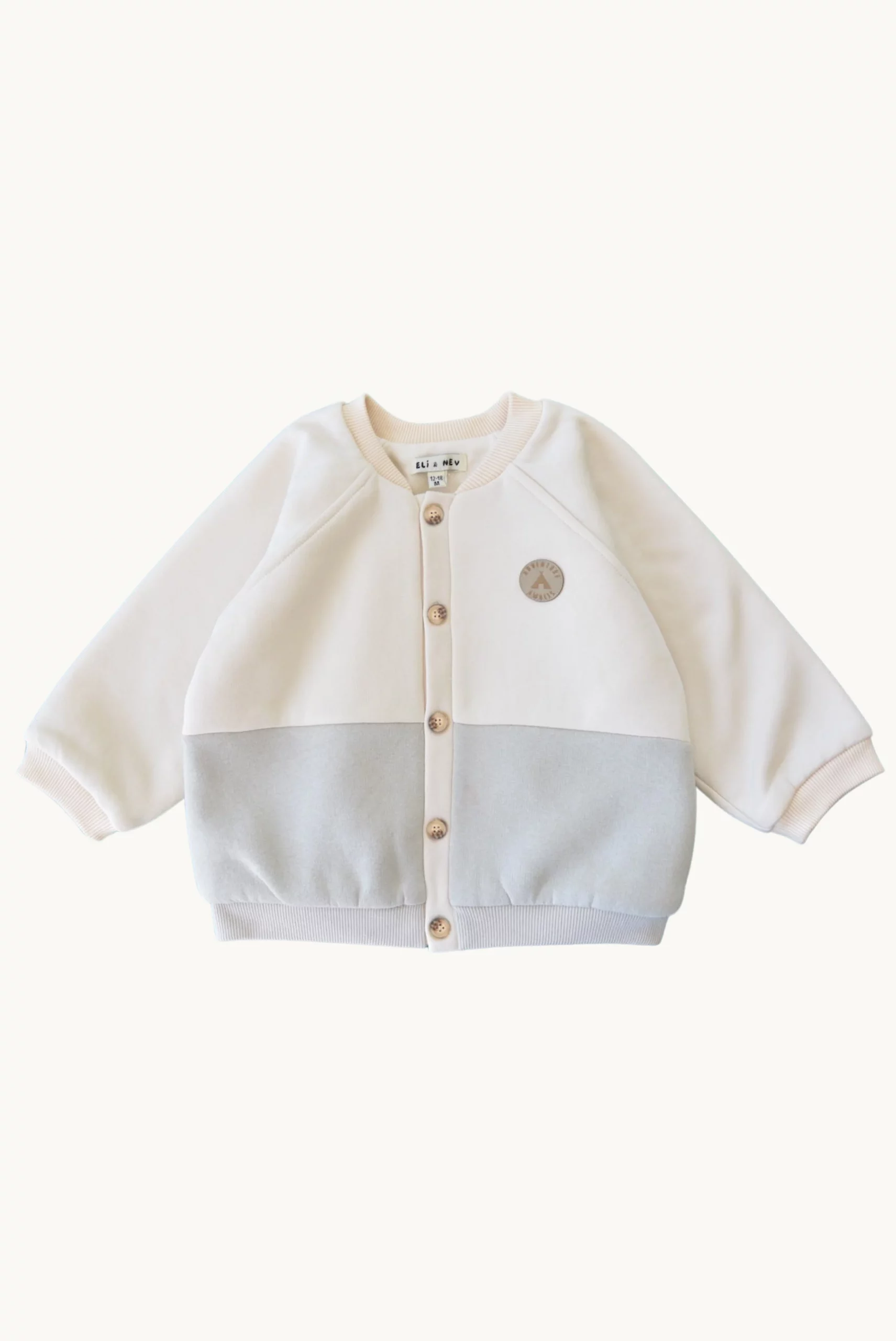 Modèle unisexe Description Gilet oversize avec étiquette « Adventure Awaits » Boutons sur le devant Couleur : Crème et vert sauge (tissu extérieur), crème (doublure). Composition Tissu extérieur : 100 % polyester. Doublure : 100% coton. Tissu certifié OEKO-TEX.