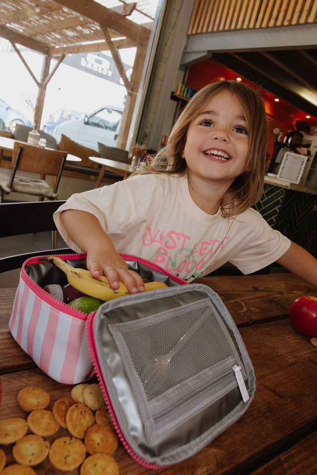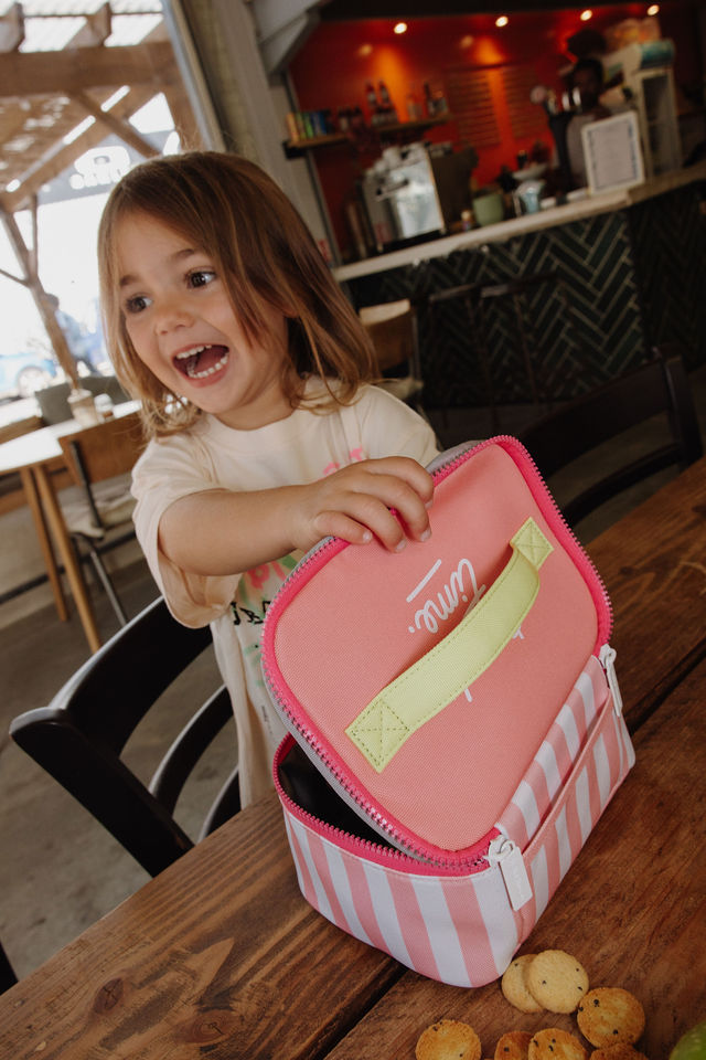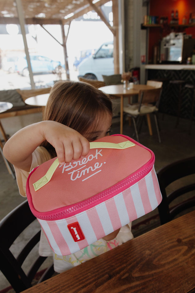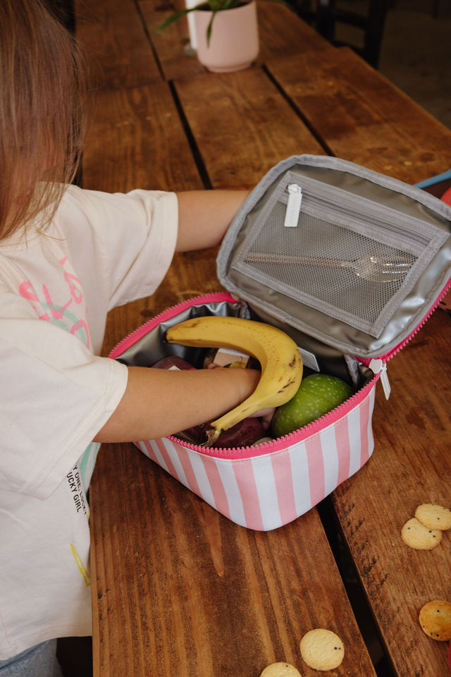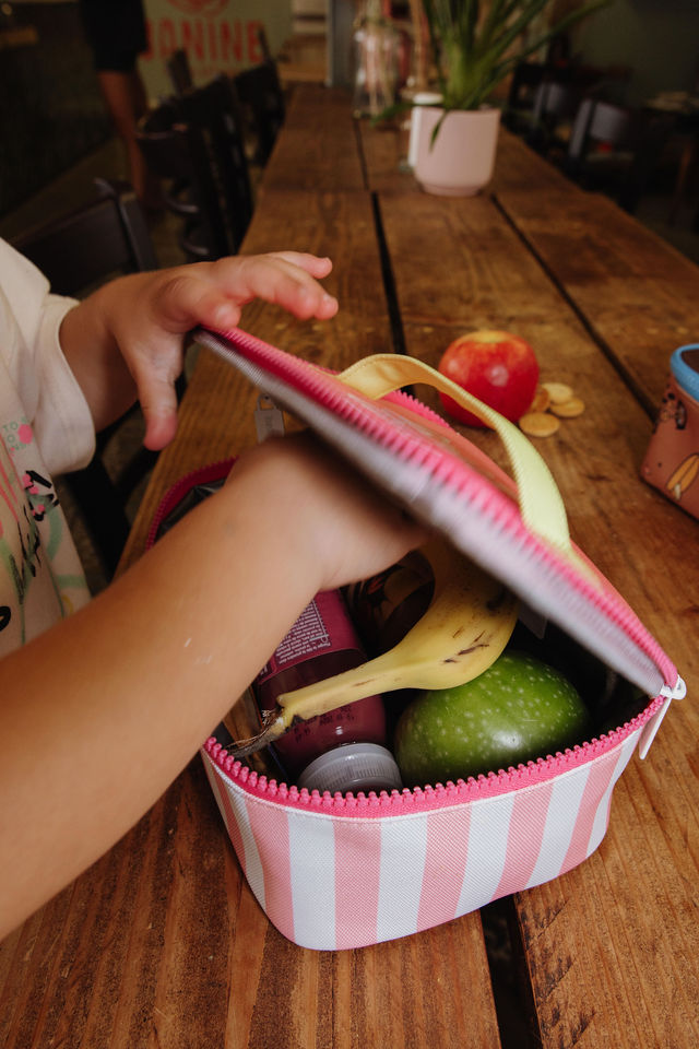 Description Optez pour notre Sac Goûter isotherme pour enfants et bébés, Pink Stripes. Coloré, stylé, isotherme, souple, résistant, au bon format, il va accompagner vos enfants sur toutes leurs activités. Nouvelle collection, stocks limités, profitez-en ! Caractéristiques : Intérieur isotherme (chaud et froid garanti). Tissu 100% polyester recyclé ♻️ Tissu déperlant. Avec anse de transport. Poche intérieure. Zip large. Sac goûter pour enfant. Format idéal !