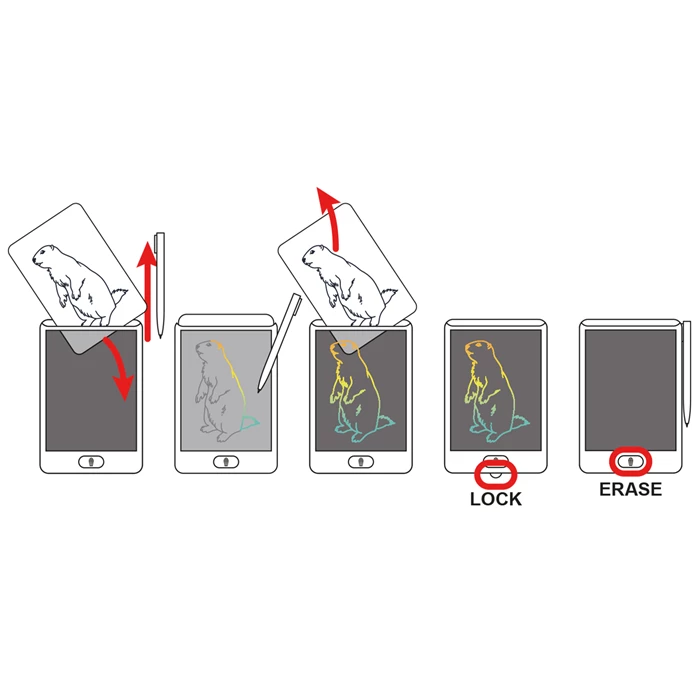 « Expérience de dessin sans limites avec le tableau design lumineux! Le compagnon parfait pour les jeunes artistes en herbe, favorisant la créativité, le développement et l’apprentissage autonome. L’écran à cristaux liquides (LCD) de 8,2″ » permet de reproduire l’une des 30 illustrations fournies à l’aide du stylet intégré. Avec un simple bouton, le dessin peut être effacé et recommencé. Grâce à son design compact et léger, le tableau se glisse dans tous les sacs. Un élastique maintient toutes les pièces en sécurité. »