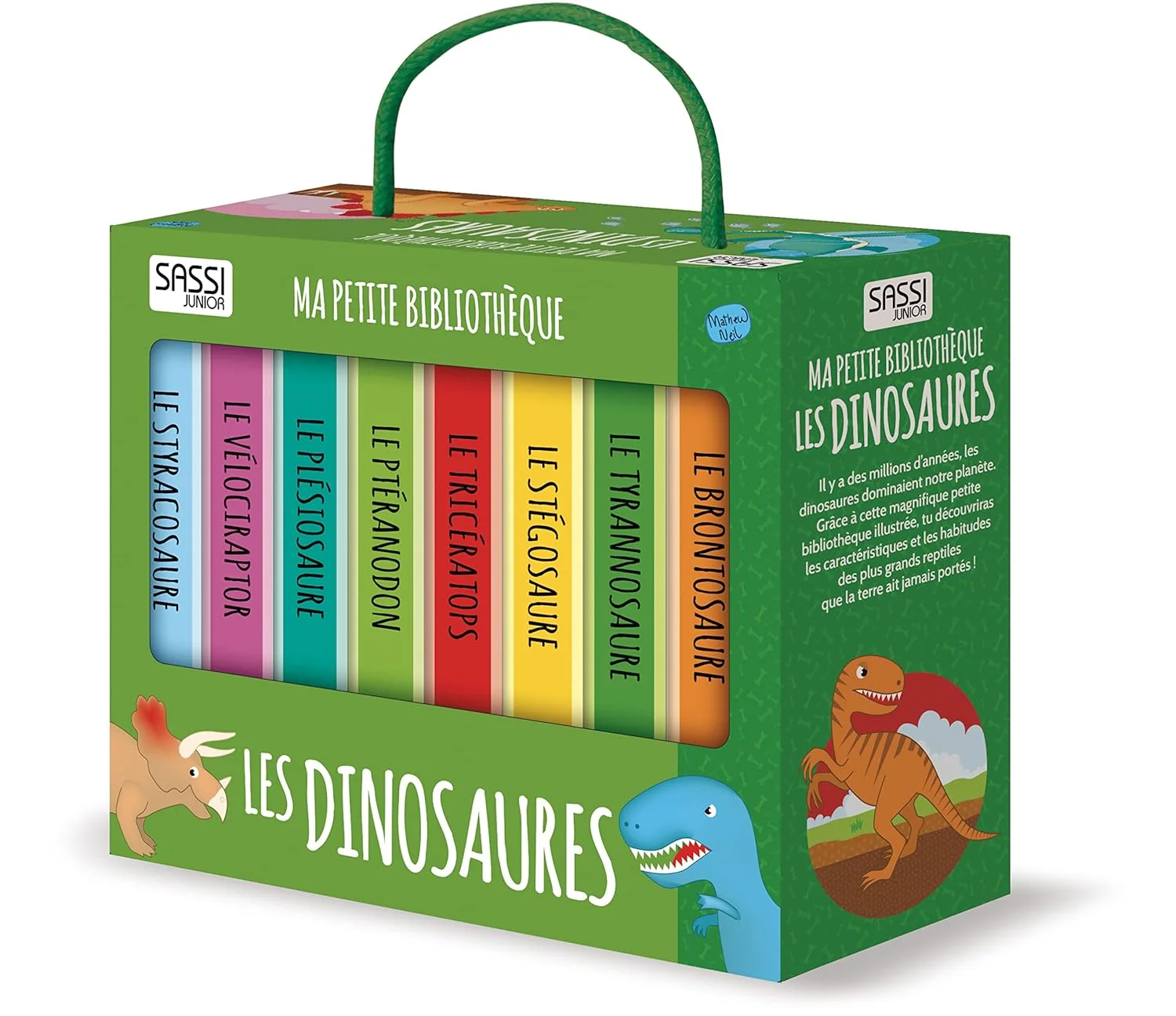 8 petits livres illustrés et un packaging attrayant ! Tu savais qu’il y a des millions d’années, les dinosaures régnaient en maîtres sur notre planète ? Il en existait de très nombreuses espèces, toutes plus différentes et surprenantes les unes que les autres ! Découvre ta petite bibliothèque et feuillette ces huit petits livres qui te révèleront tous les secrets de ces célèbres reptiles préhistoriques !