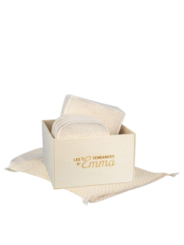 Cette boîte contient : 10 carrés bébés lavables + 10 gants de change lavables + un filet de stockage et de lavage en coton bio. Matière : Eucalyptus Ecologique, économique, pratique et facile à vivre!