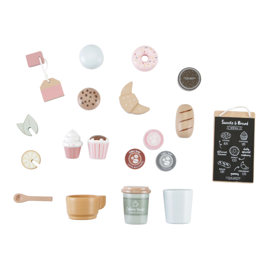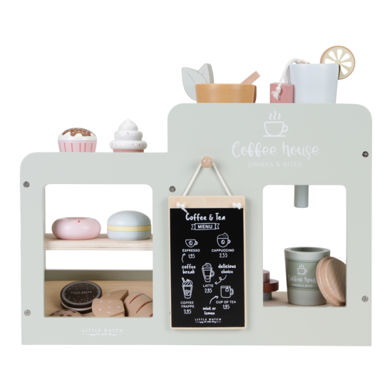 Café ou thé ? Accompagné d’un biscuit ou d’une part de gâteau ? Avec ce joli set de jouets en bois, tu as directement un joli petit coin pour jouer. Glisse dans la peau d’un véritable barista et prépare un bon cappuccino pour maman et papa avec ta propre machine à café. Ou peut-être préfères-tu servir un café ou un thé dans ton propre café avec un menu plein de bonnes choses ?! Avec ce coin café en bois, tu as tout ce qu’il te faut pour t’imprégner de ton rôle. Que tes clients aient envie d’un café ou d’un…