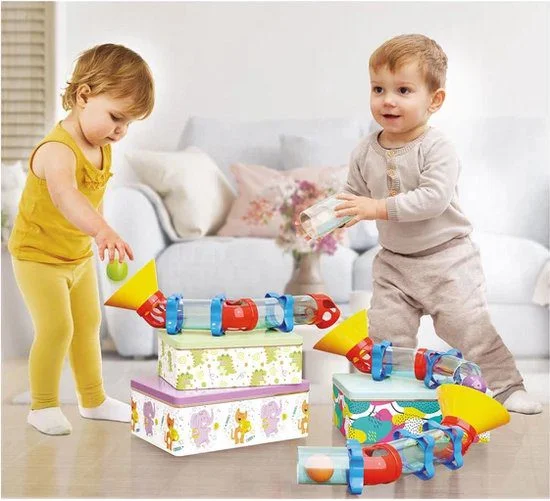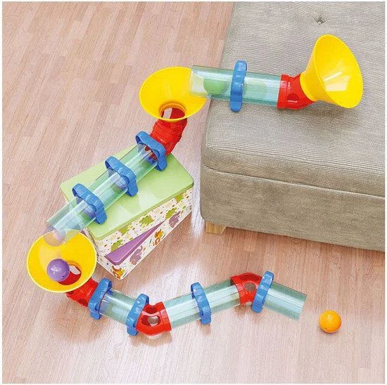 Petits et grands jouent ensemble avec Migoga Pipe ! Il s’agit d’une piste sans bases de support qui offre une liberté maximale pour construire des parcours toujours différents, où les billes occupent le devant de la scène avec des sauts spectaculaires ! Contenu • 3 entonnoirs • 9 colonnes • 7 tours • 8 anneaux de connexion • 3 grosses boules Convient à partir de 2 ans.