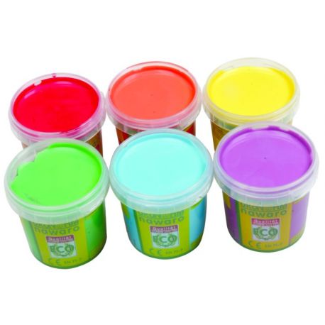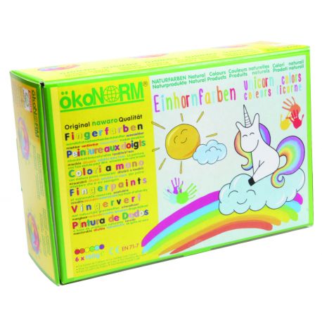 Pour les enfants, peinture aux doigts ou au pinceau, sur papier, verre, bois ; composée de matières naturelles : colorants alimentaires, craie, plantes, pigments. Couleurs : rouge, orange, jaune, vert, bleu, violet. Fabriquée en Allemagne.