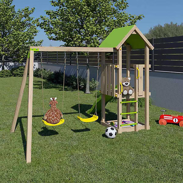 Avec ses couleurs pétillantes et ses activités variées et ludiques, cette belle aire de jeux en bois transformera votre jardin en un véritable paradis du jeu.
