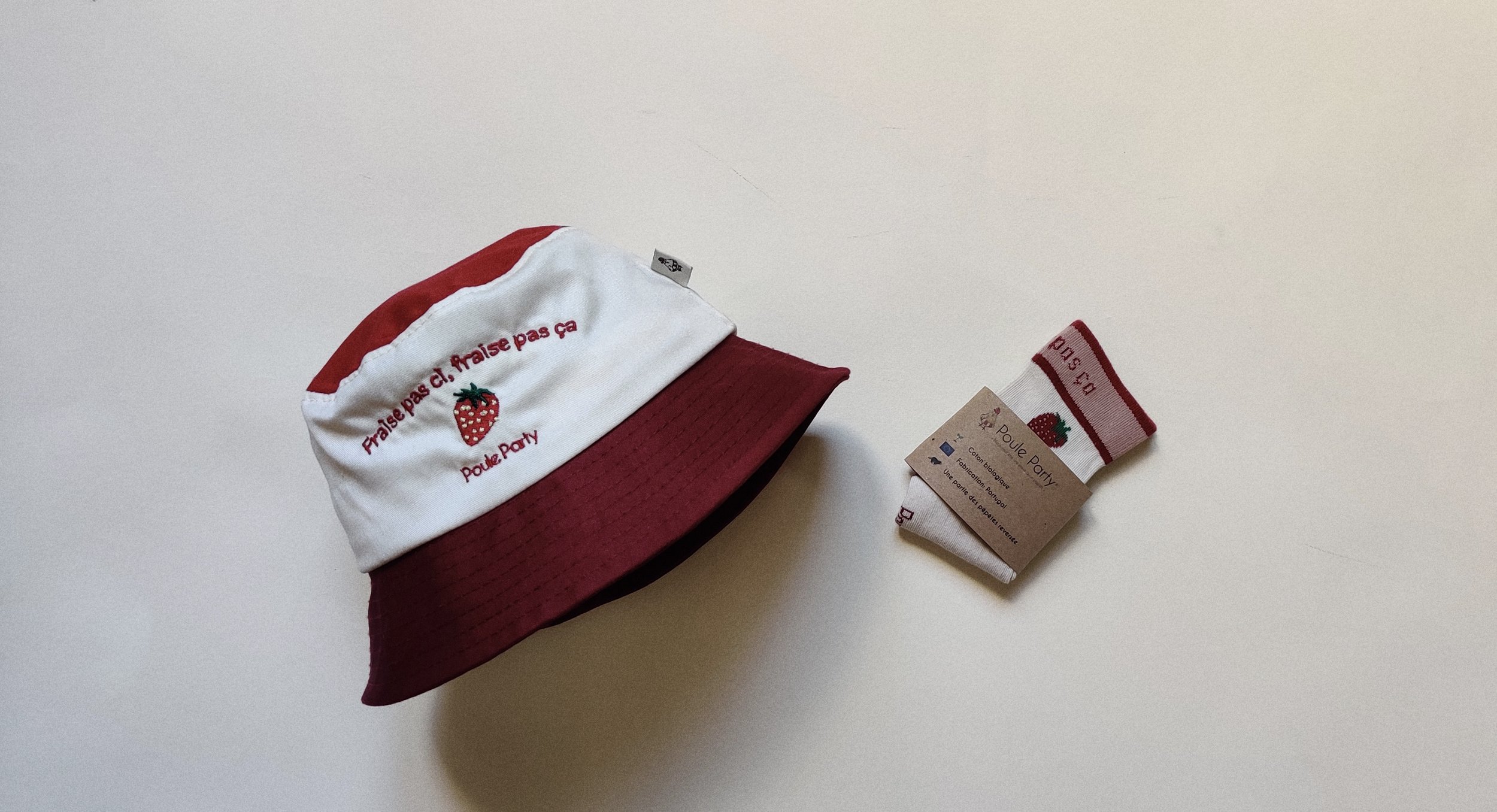 FRAISE PAS CI, FRAISE PAS ÇA Ecoresponsables, nos bobs fabriqués avec 100% de coton biologique GOTS vont faire la différence sur vos super poussins 🐤 Pensez à la super association avec nos chaussettes matchy matchy! Les produits chimiques toxiques pour la santé sont bannis chez Poule Party® Couleur: Ecru, bordeaux et rouge Fabrication: Portugal
