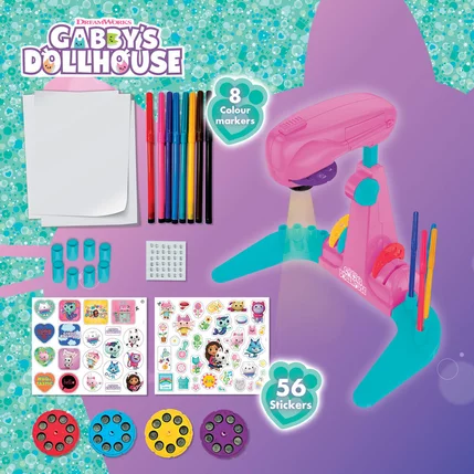 Le Projecteur École de Dessin Gabby et la Maison Magique est un jouet éducatif conçu pour initier les enfants au dessin de manière ludique, en s’appuyant sur l’univers coloré de la série animée à succès de Netflix, Gabby et la Maison Magique.