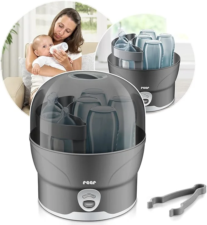Le stérilisateur VapoMat S de REER garantit une désinfection rapide, efficace et sans produits chimiques de vos biberons, tétines, sucettes et petits accessoires en seulement 10 minutes. Utilisant la puissance naturelle de la vapeur d’eau, il assure une hygiène parfaite tout en respectant la santé de votre bébé.