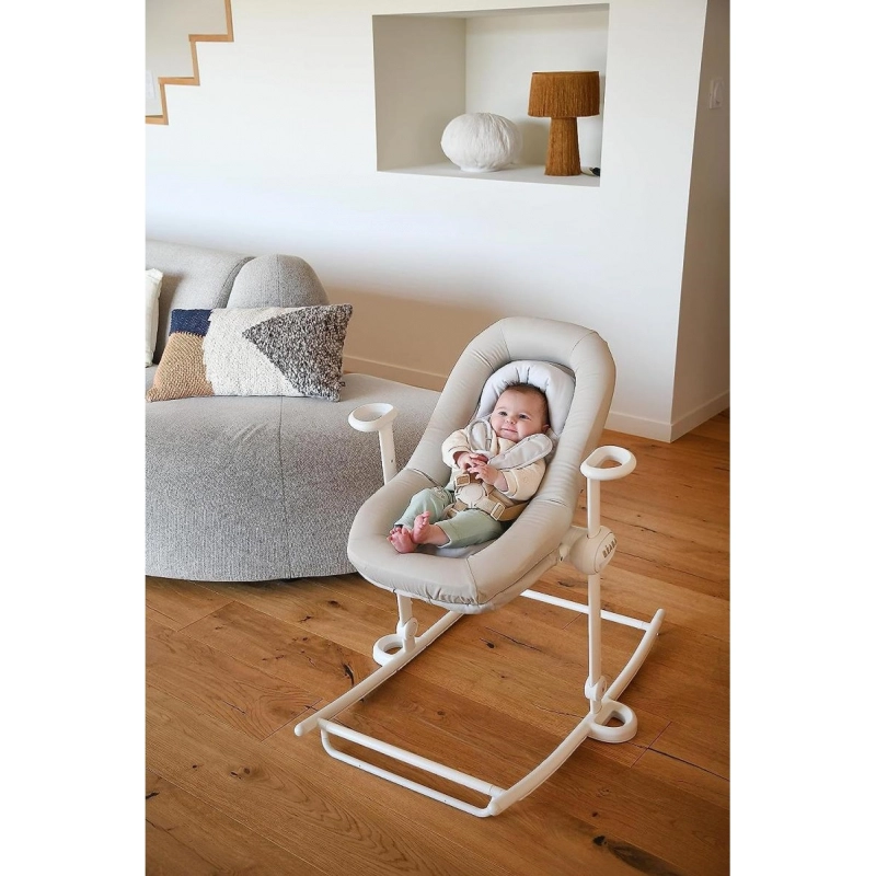 – Fonction bascule avec frein intégré : pour bercer l’enfant en toute sécurité.