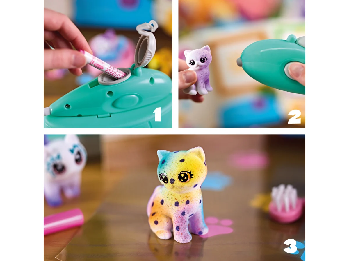 - DONNE UN BAIN ET RECOLORIE : Utilise la petite brosse pour donner un bain à tes bébés animaux. L’eau éliminera la couleur et tes nouveaux amis seront prêts pour un nouveau jeu.