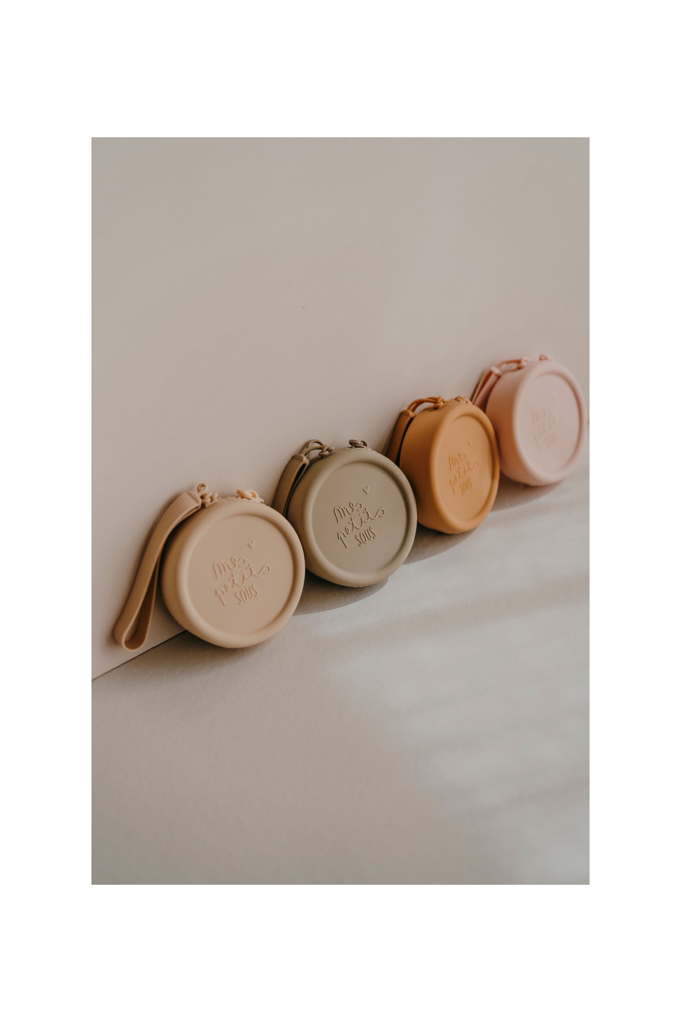 Attache-suce en perles de silicone – Blanc, beige et bois